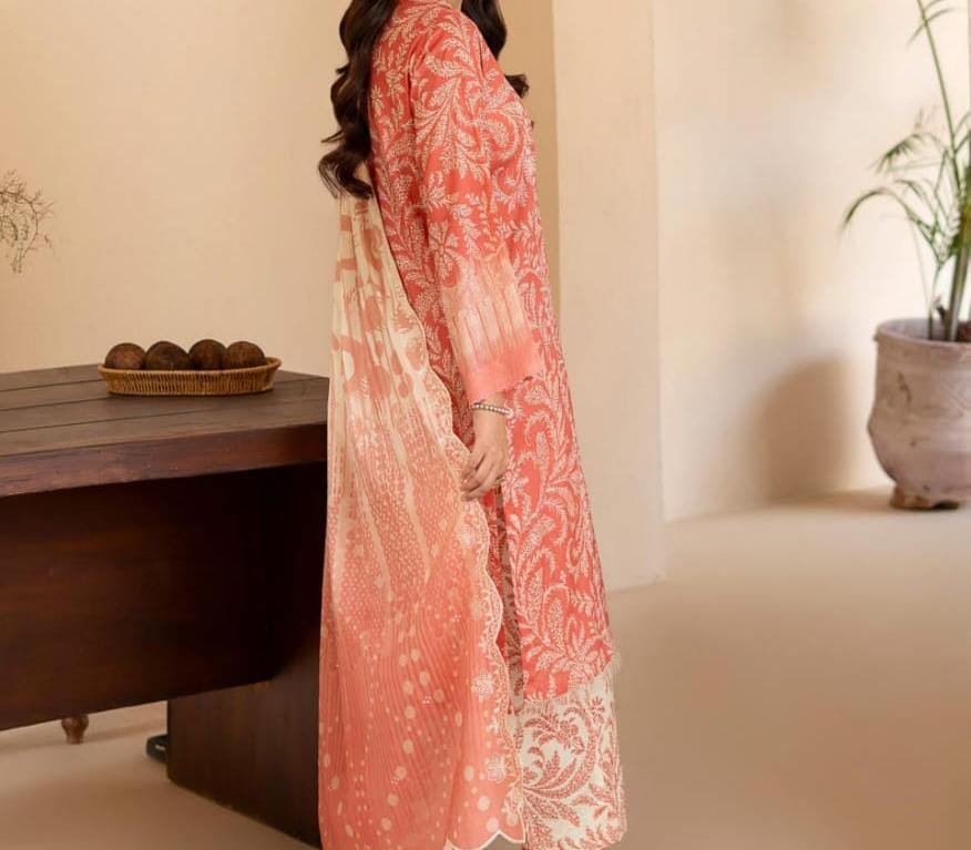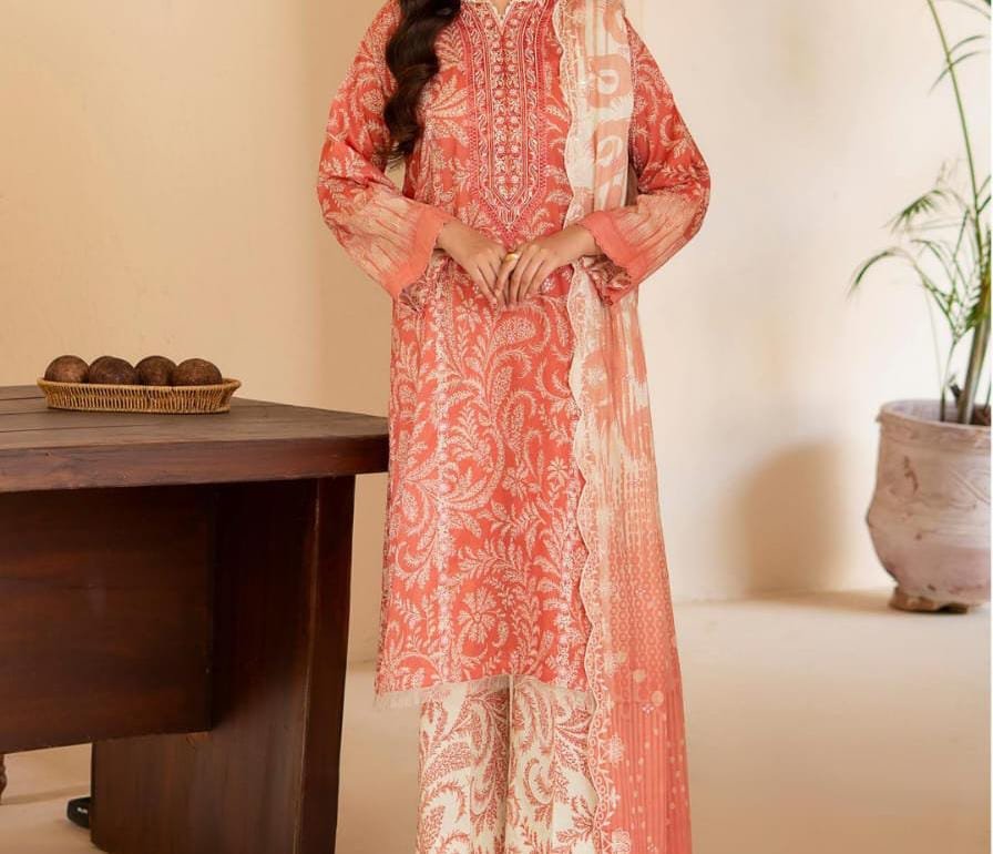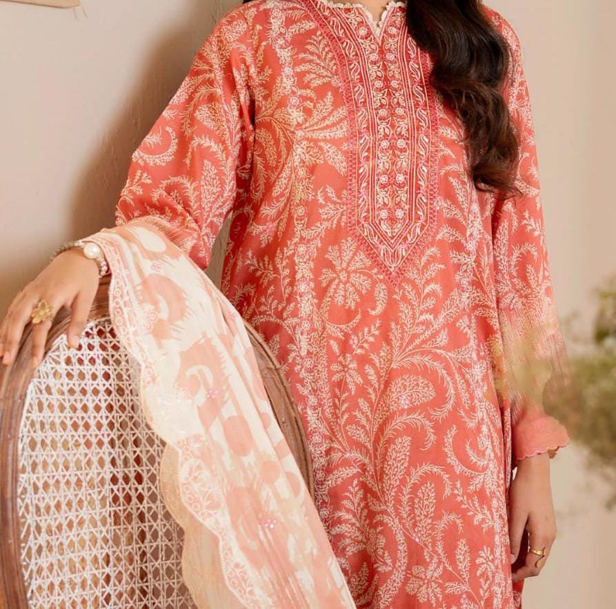 🌿 Where elegance meets tradition Collection Details: ✔ Front: Digitally printed lawn with Sequins Embroidered Neck ✔ Back: Digital Printed Lawn ✔ Sleeves: Digital Printed Lawn ✔ Dupatta: Digital Printed Pure Lawn Check with Sequins Embroidered Cut-Work ✔ Trouser: Digital Printed