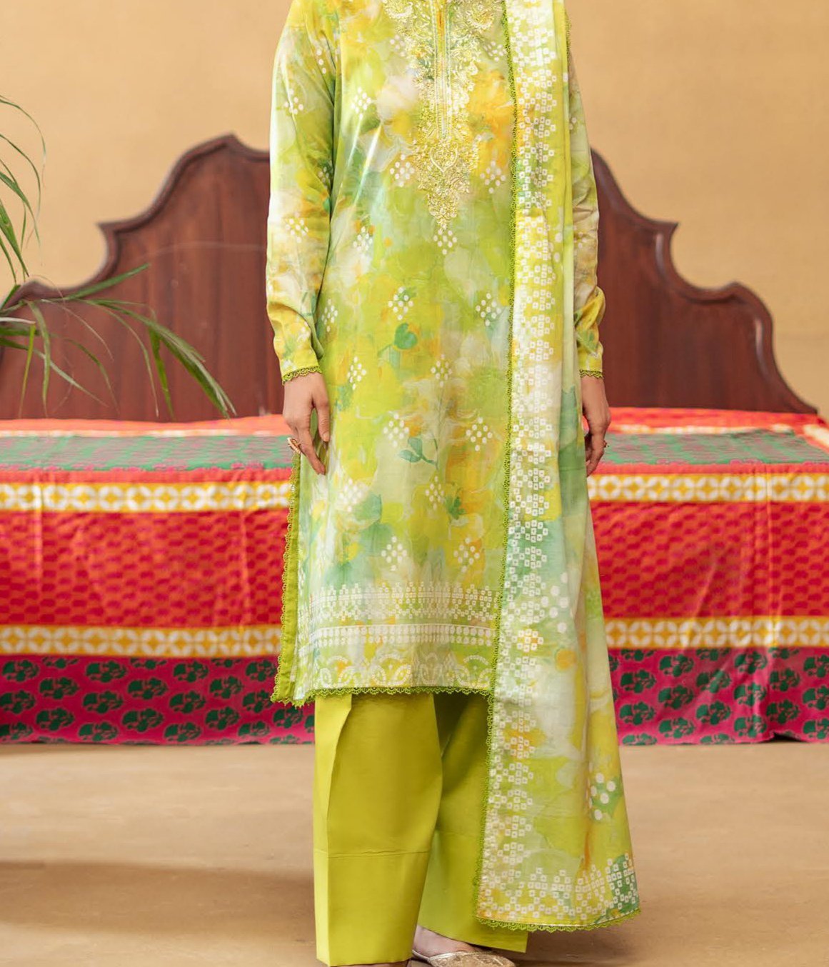Shirt Front: Digital Printed Lawn with Embroidered Neck